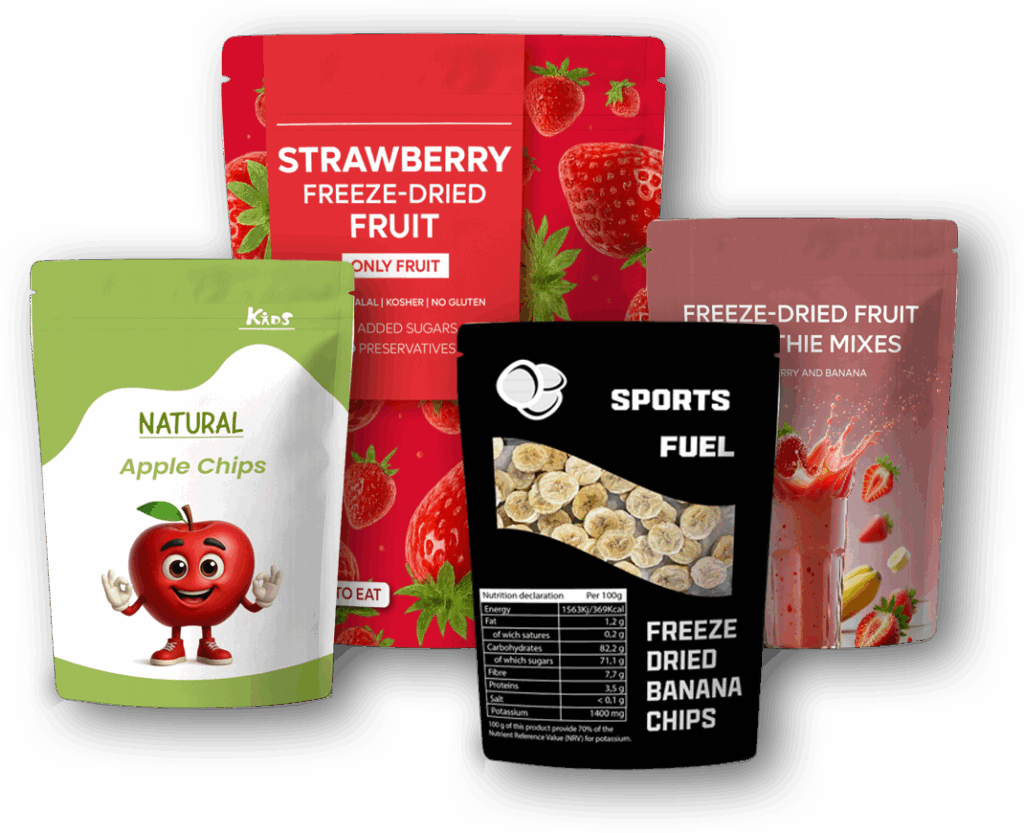 Transformamos las mejores frutas y alimentos naturales en deliciosos aperitivos liofilizados que conservan todo su sabor, color y nutrientes. Desde bayas hasta una selecta variedad de frutas, cada bocado conserva su pureza y frescura originales gracias a nuestra innovadora y sostenible tecnología de liofilización.